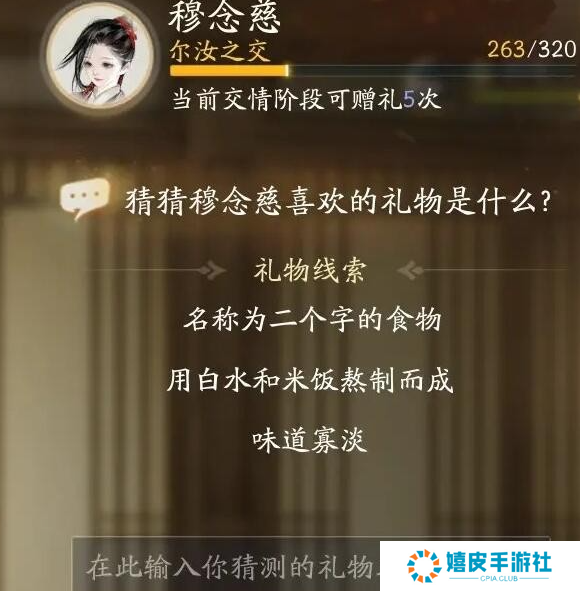 礼物线索四:名称为二个字的食物,用白水和米饭熬制而成,味道寡淡