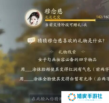 礼物线索五:女子勾画妆容必备的四字物品,用-涂抹脸颊使其变得红润有气色(前两字)用_涂抹全脸使其变得白皙有光泽( 后两字)