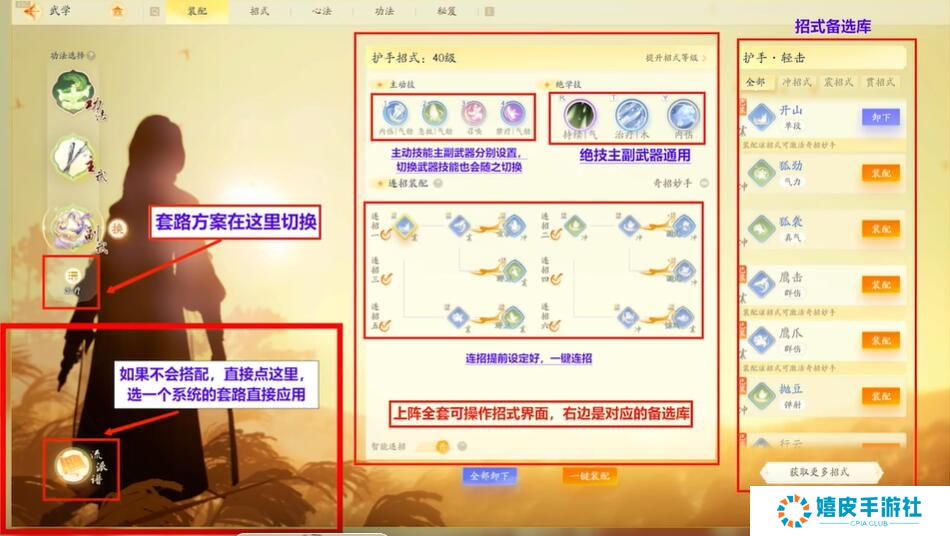 4、在装配中,我们可以自己决定如何选择主副武器,也能让系统推荐适合的流派,非常的方便。
